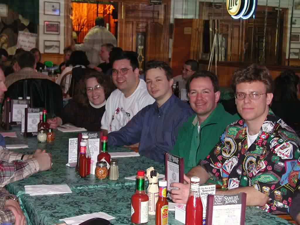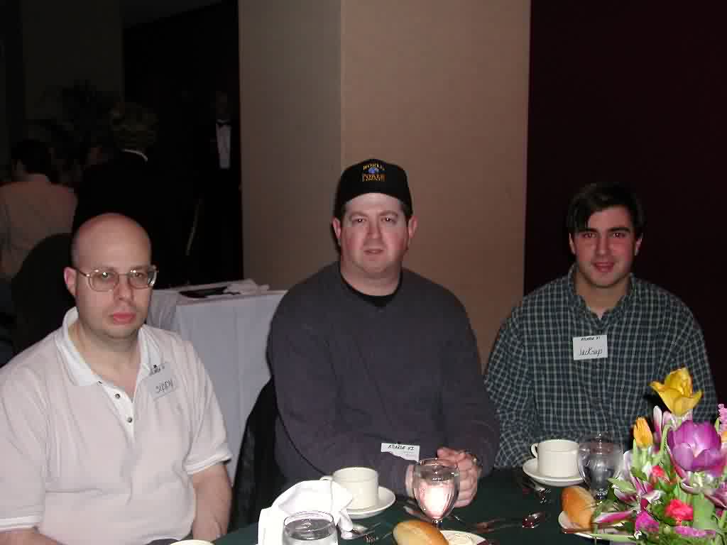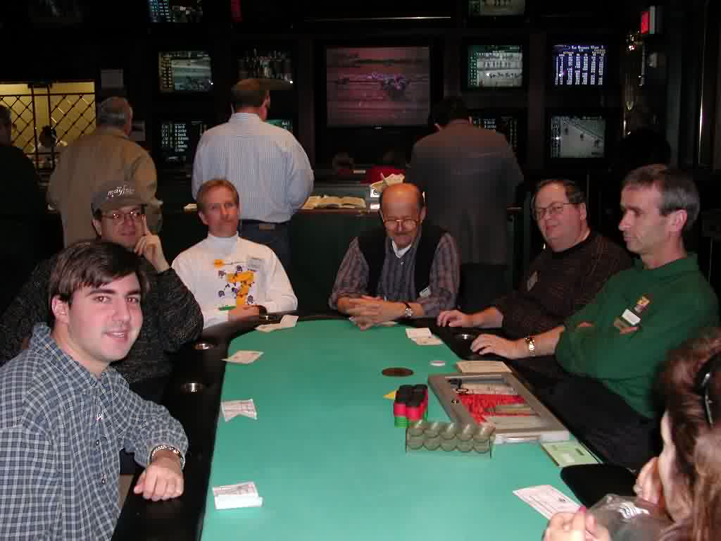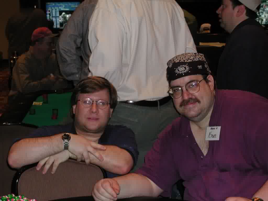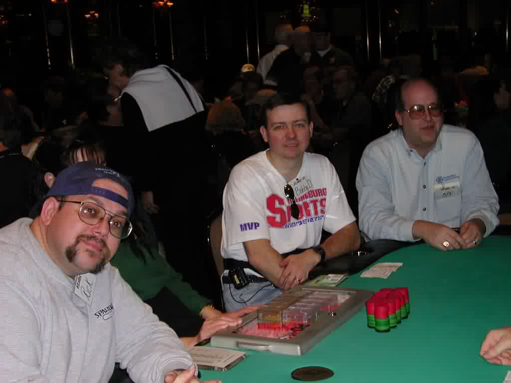BEWARE! This post is abnormally LONG so either print it and read it later so your eyes don't melt from the radiation the monitor emits or read it in parts. Otherwise, I hope you enjoy the post as much as I enjoyed writing it. Hello RGP. I haven't written to this forum in a long while because I really haven't had much to say. It also didn't help that Deja.com was bought out by Google so my preferred form of reading this group was not available for a long time. It is Monday and I have much to say about the ATLARGE event over the weekend. This will definitely be a lengthy trip report so please sit back, make some popcorn, open a bottle of suds and enjoy the reading. I didn't do so well in the tournaments but that wasn't a big deal. I did, however, have a great time meeting all the RGP folks and attaching a face with a moniker. Just to run down a list of the notables that I met. Jazbo, Tiger, Dangerous Dan, AlwaysAware, Jacksup, Rebuy, Sippy, Dave!, JT, Cactus Kev (who I didn't know was a guy I used to play with on Tuesday nights), a guy named Stevie (he won a 7-Stud tournament at the WPO, I think) Escargot Beth (I don't know if that's her posting name but that's how we were introduced), Nolan, Action Bob, Brad and Raydon. There were others that I met that I either already knew or didn't know their names. So where do I begin? If you want to go from the beginning then I guess that would be Thursday night when I arrived with my friend PSU72. He stayed at the Trop while I stayed out on the pike. I think next time I'll make reservations at the Trop. It was a pain in the ass to wait for the shuttle to pick me up and the cab fare was $12 one-way. Anyway, I digress. There's a 7pm Hold'em limit tournament on Thursdays for a small buy-in so I decide to get a little practice in before the events over the weekend. I have some time to kill since we arrived and checked-in by 5:30pm so I get on the waitlist for $10-$20 Stud and play $5-$10 Stud while I'm waiting. To make a long story short, I think I was stuck $200 in the $5-$10 game and $300 in the $10-$20 game before I even hit the tournament. Don't ask me how and don' t ask me why. It just happened. I don't recall anything that jumped out at me in particular other than I was stuck. The tournament went pretty well until I had a few suckouts right after the color-up break. I probably went out in that tournament at 55th or thereabouts. After the tournament was over I picked the $10-$20 Hold'em game to sit until I was too tired to play. I didn't make any headway so it was basically a push until I left at about 3am. Highlight of the night: Playing heads up with Val, $10-$20 Hold'em and only losing one small bet. If anyone who's reading this knows Val then you' ll know what an accomplishment I made. We played only ½ hour and it was a ton of fun. From what I understand he made his way to the pink chips game after we played and Friday morning I met my friend at the Trop at approx. 12ish and we went to the cardroom. There were no games going so I put myself on the $10-$20 Hold' em list while I played $10-$20 Stud. The Trop holds a Friday $100+$15 limit Hold'em tournament at 4pm. I won in January so I, of course, am hoping that I make the final table again. My dreams were cut short when I flopped a set of 7's and my opponent goes runner-runner Broadway on me and the same opponent spikes a King on the turn to kill my pocket Ladies cold. The worse thing about that hand was he raised with KQo UTG then I re-raised. Everyone folds and he calls to see a flop of Ten high rainbow. He checks, I bet and he calls. When the King hits the turn I know it hits him. He makes this story that the pot was too big to fold and if I didn't re-raise he would have folded on the flop. Whatever. From what I understand he was doing very well so good for him. I was also at the table with Nolan and Jacksup, both of which are from my neck of the woods and both great people. It turns out that they've asked me about my home game but haven't been able to make the trip. Hopefully they will be able to make the trip once in a while. Anyway, I bust out one or two hands later and I'm going to the Taj for some action. I jump on the Taj $10-$20 Hold'em list and don't wait too long before I'm sitting down with the tourists and regulars. The table starts to break and it's still fairly early so I head to an open seat in the $15-$30 game. The were a couple of memorable events. This one guy on my left who seemed to play every pot that I played and always sucked out on me on the river. It was quite frustrating and causing me to play worse. He was on my left so I couldn't shake him. I eventually got a seat change. This time it was the new guy on my left that decided to play every pot I played. I'm totally on tilt by this point and I'm getting tired but see red Aces UTG. I make a raise and the guy on my left (GOL) and the BB are the only callers. The flop is Kc 3s Ac. The BB bets, I raise, the GOL calls and the BB folds. The turn is a blank, I bet and GOL calls. The river is the 3c and I check the flush. GOL bets and I feel myself boiling. I angrily say, "Nice way to crack a set, but I'll call anyway to keep you honest." I hear the dealer, through the fog of what is my TILT, say, "Full house." I look at the board again and am stunned. I then reflect back to the flop. "Didn't I say to myself, Self, wouldn't it be nice if the 3 of clubs hit?" I think out loud that I must be too tired to play if I miss the full house and glance down at my watch to see 5am staring back at me. I call a cab and hit the bed by 6am. I ended up being stuck $500 for the evening. Saturday I make it to the Trop at about 12ish-1ish and the joint is jumping. The ATLARGE tournament is going to start soon (2pm) and all the hopefuls are here. I sit at $10-$20 Stud while I wait until the tourney starts. When 2pm rolls around I meet with Tiger and he gives me an envelope with my name tag and receipt. I try and calm myself down with little bits