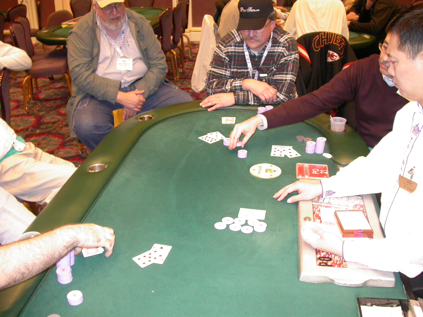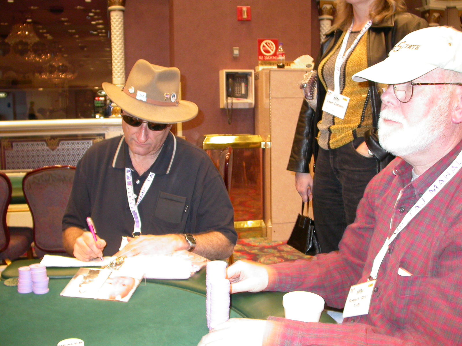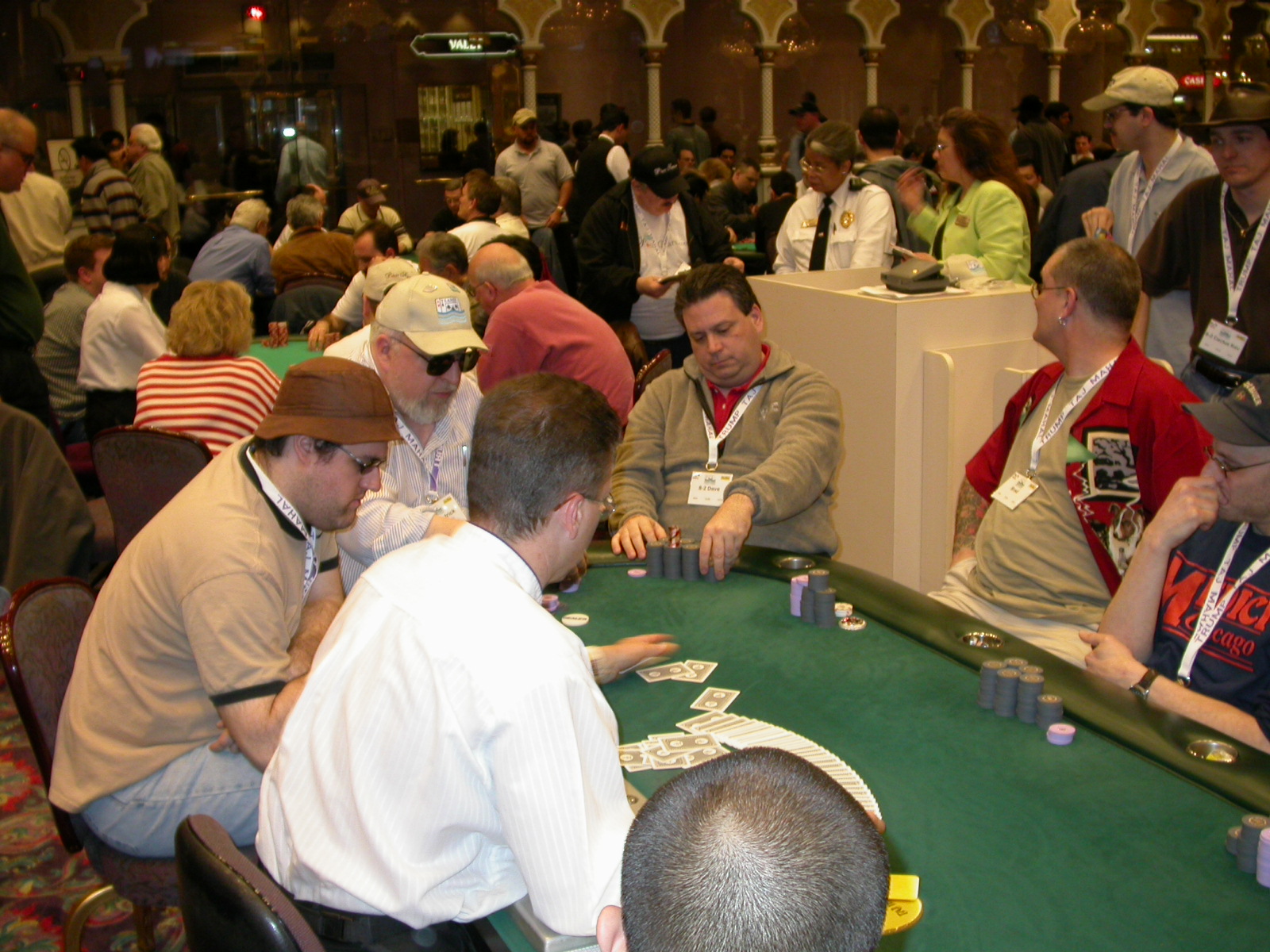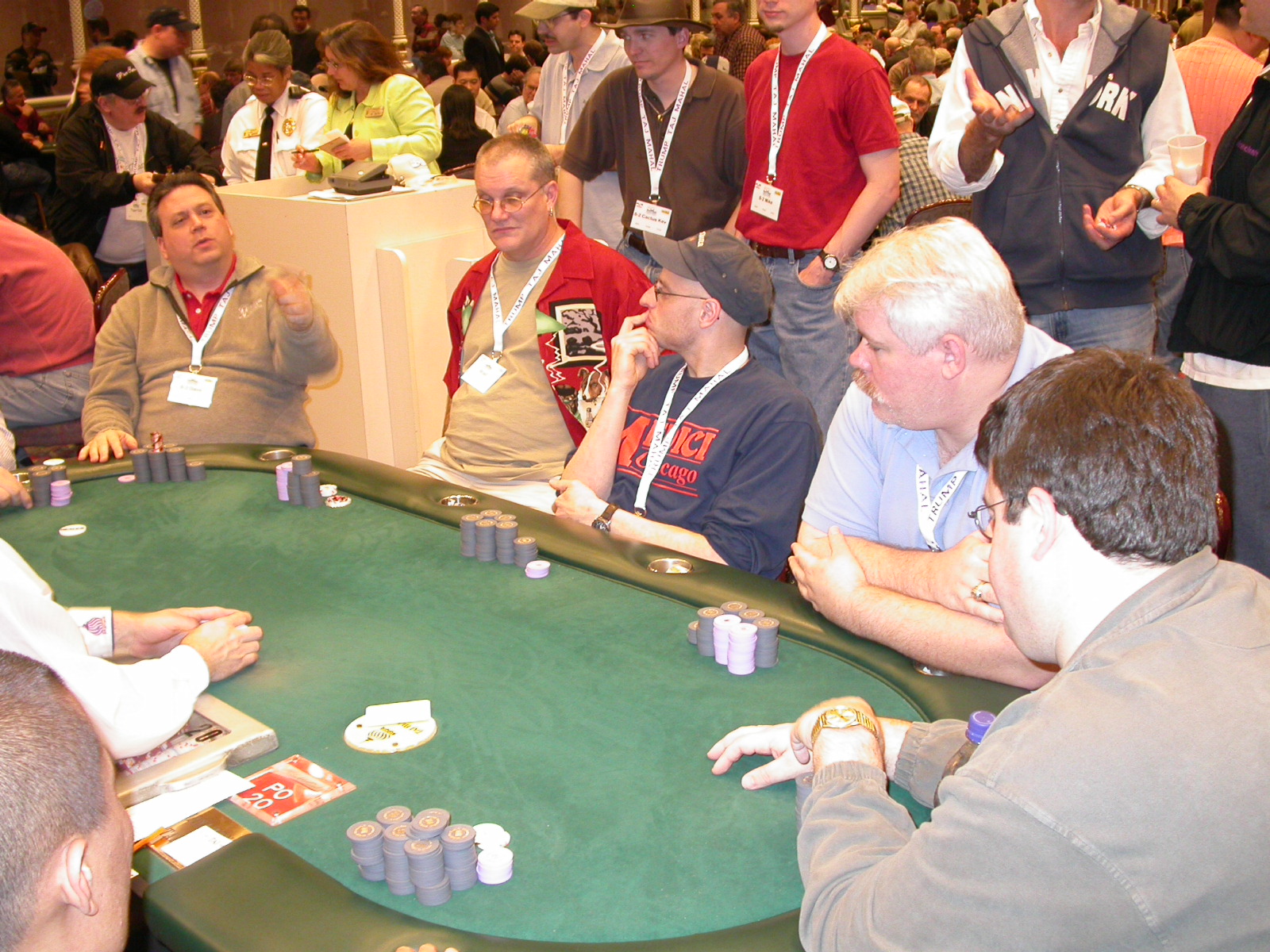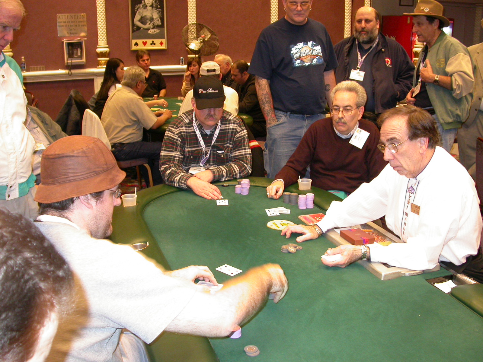 Standard trip report disclaimer: All events are reconstructed to the best of my memory; however, my memory seemed far worse this trip than others. I am a very poor person with both names and faces. As a point of fact, I may be the worst poker player there is when it comes to remembering names and faces. If I screw up your name, confuse you for someone else, make an inaccurate physical description of you, or completely forget about you, rest assured that it's my fault and I enjoyed your company. Russ Rosenblum -- whom I introduced myself to twice in three hours -- can attest to the complete ineptitude of my facial recognition skills. My severe sleep deprivation made my normally poor memory even worse both with regards to faces and incidents. For those of you who like lots of detailed poker action, I can't remember the hands well enough for you to get a lot out of this report. For those of you who like wacky antics outside of the poker room, there are none. For those of you who like meandering, vague recollections of crap...man, you're in luck! Monday, March 17 It was with my great anticipation that I embarked on a number of firsts. Not only was this to be my first ARG event, this was to be my first trip to the East Coast, my first time leaving Costa Rica (albeit since arriving last September), my first trip to New York, my first trip to the arena of the New Jersey Devils, a team I've had an affinity for since 1988. It was thus with no slight disappointment that my trip was delayed leaving Costa Rica, both boarding and departing. However, this was a very minor commuting bad beat, as the pilot evidently gunned it, or the winds were in our favour, or something, arriving just a few minutes late. Once in Newark, New Jersey, I was greeting by my excellent Newark-area hostess Christine Gonzalez and her red Jeep. We commuted quickly back to her place and to Continental Airlines Arena for a much anticipated game between the Devils and the rival Philadelphia Flyers. First place in the NHL's Atlantic Division was up for grabs, but the Devils didn't play like it, putting up a dispirited effort in a disappointing 4-2 loss. The game was not sold out, but the crowd was sufficiently rowdy to make up for the vacant seats. That it was St. Patrick's Day likely didn't hurt. Of note, President Bush's speech was broadcast in the stadium. Despite what seems to be a fair bit of anti-war sentiment in the area, the speech received four loud ovations. Tuesday, March 18 Today was my one day to do what I think everyone else in the world but me has done already -- tour New York City. What a vibrant city, so full of life, so...purposeful. I felt almost ashamed to be a tourist, since those around me all seemed to have somewhere to go; I felt as though I were a parasite, sucking time and leisure out of a city which had precious little of either to spare. New Yorkers, contrary to their reputation (or what I thought was their reputation), are a friendly species, but in a different sort of friendliness. After taking a two-hour cruise around Manhattan Island, I visited (in order) Times Square, Rockefeller Plaza, the New York Stock Exchange, the WTC site. Although I'd been told that there isn't much to see at the WTC site -- and in fact, this is true enough -- I felt very much compelled to see it, and am very much glad I did. I didn't do so to pay my respects to the victims and heroes of 9/11 (btw, I dislike how these are considered equivalent sets), although I did. I mused how odd it was that an event so horrific, tragic and damaging to the world could paradoxically bring forth so much positivity and strength, as we somehow find a profound connection with complete strangers. It is strange. I returned via subway to the port authority terminal, where I embarked back to Tina's. We went out for dinner, then to a bus station named Cheesequake (there has to be some interesting etymology surrounding that name) for the 2-hour bus to Atlantic City. One thing I don't ever think I've done before is travel a very long time and distance to a major cardroom and not play that first night, regardless of how tired I'd been. Unfortunately (perhaps), I did have to do this on Tuesday night. The Taj has a weird policy regarding opening new games and changing and breaking existing games. There were some 14 or 15 names on the 10/20 list, but no game opened for over two hours. When I realized I was falling asleep at the table waiting for games, I decided that sleep to start again in the morning would be the better play. Wednesday, March 19 / early Thursday, March 20 The waiting list strangeness continued Monday. I started playing a must-move 10/20 game at around 8am (and it was a surprisingly good 8am game), and also had my name on 15/30. There were two 10/20s and a number of players there were also on the 15 list, like me. At some point, a floorwoman goes to the main 10/20 and says that she knows a number of players from that game are also on the 15/30 list, so instead of breaking the game and starting a 15/30, she asks if anyone objects to making this game a 15/30. Sounds reasonable enough. Two players object, so the game does not change. Again, reasonable enough. However, the policy is that despite the fact there are well over 10 players actually playing 10/20 who are on the 15/30 list, they do not open a 15/30 game! Evidently, the rationale is that opening a 15/30 would break up the 10/20 -- the same 10/20 in which eight of ten players would rather play at 15/30, despite a huge 15/30 list. This all seemed par for the course to the locals, but seemed simply quite nuts to me. I also had my introduction to time pots Wednesday. For those who do not know, a time pot is where instead of all active players paying the time charge on the half hour, one player fronts the entire amount for the table. For example, time in a 10/20 game is $5 on the half hour, so at a full table, the table's time is $50. The time is then returned to the player posting the ti