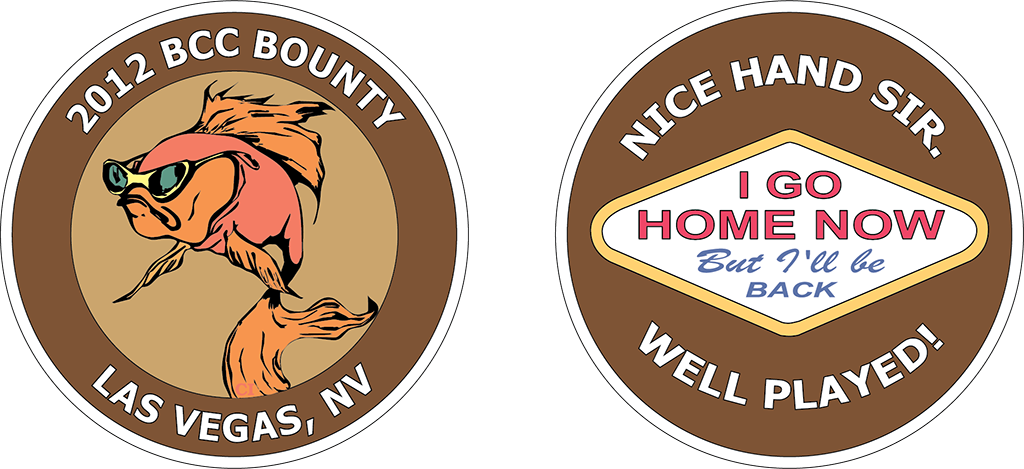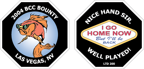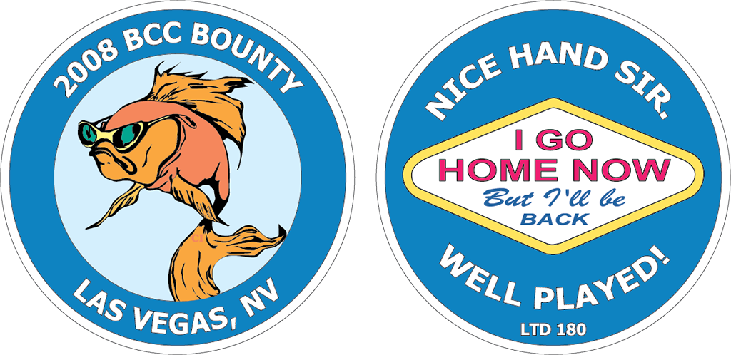 BCC members made bust-out chips to give away when they were eliminated from a tourament. Those chips were produced in three batches in 2004, 2008, and 2012.